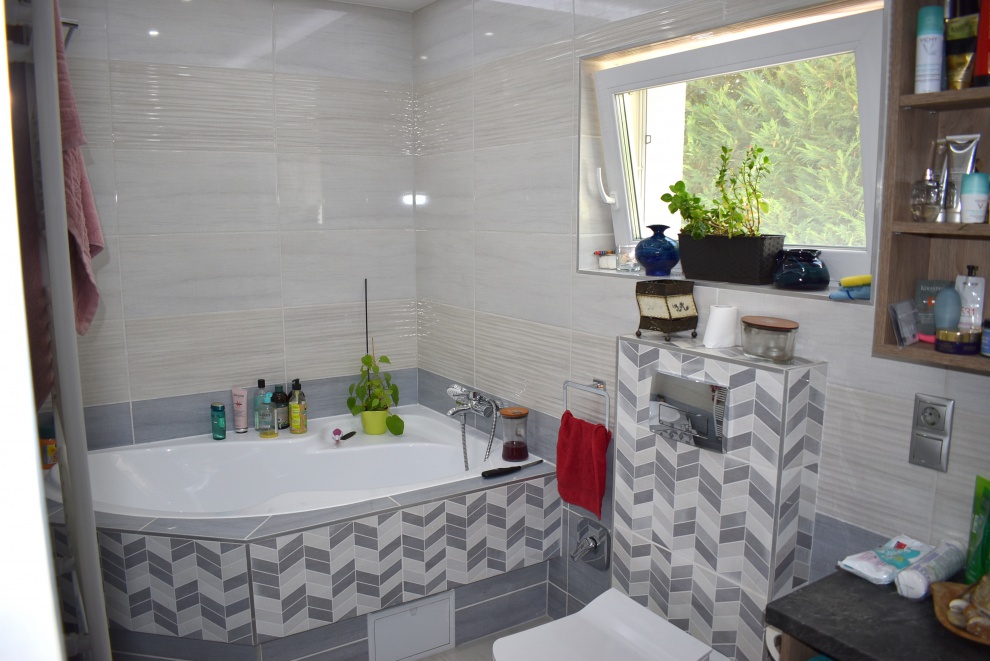 A ház fűtését Vaillant kombi gázkazán biztosítja, a földszinten kandalló, minden szinten hűtő-fűtő klíma teszi kényelmessé a mindennapokat.