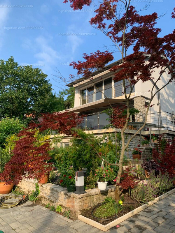 A gondosan ápolt kert mediterrán hangulatot áraszt: ritka fákkal, fűszerkerttel, veteményessel, valamint nyári konyhával, kerti zuhannyal, bográcsozóval és grillezővel. A locsolórendszer és a fúrt kút biztosítja a folyamatosan zöldellő környezetet. A fedett kocsibeálló és a viacolor behajtó több autó kényelmes parkolását teszi lehetővé.