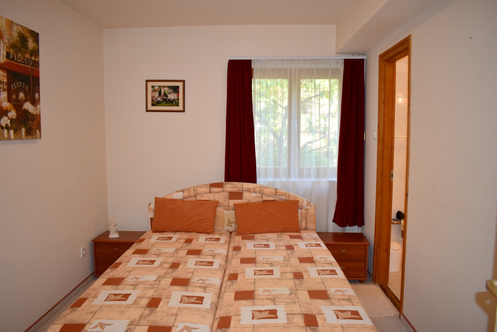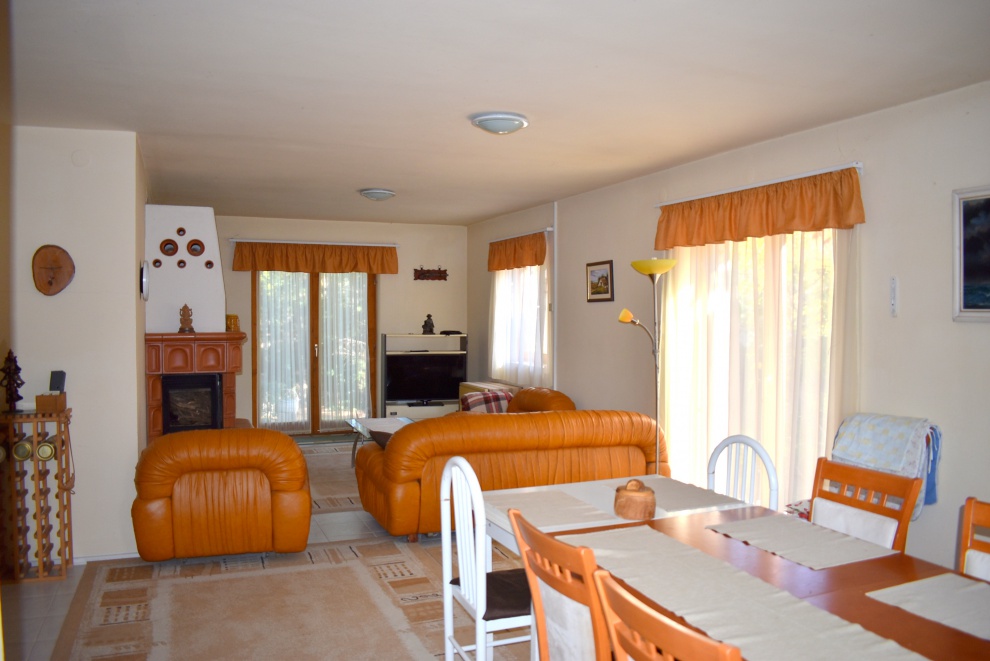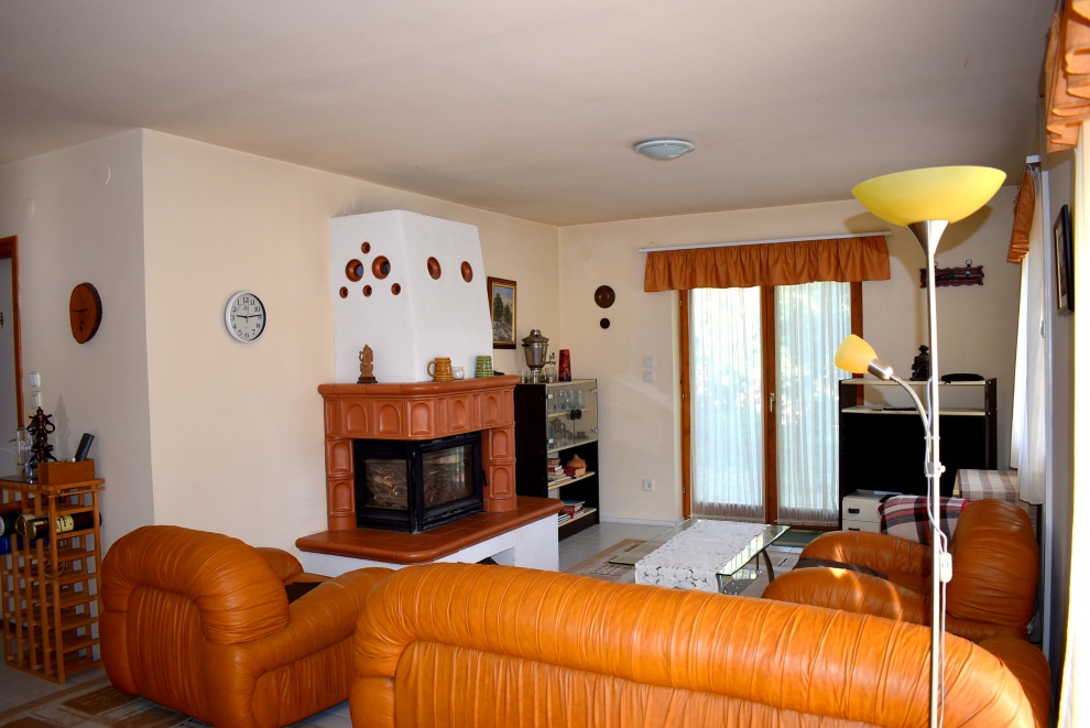 A fűtés: hőtárolós villanykályhával, illetve a nappaliban egy kandalló van.