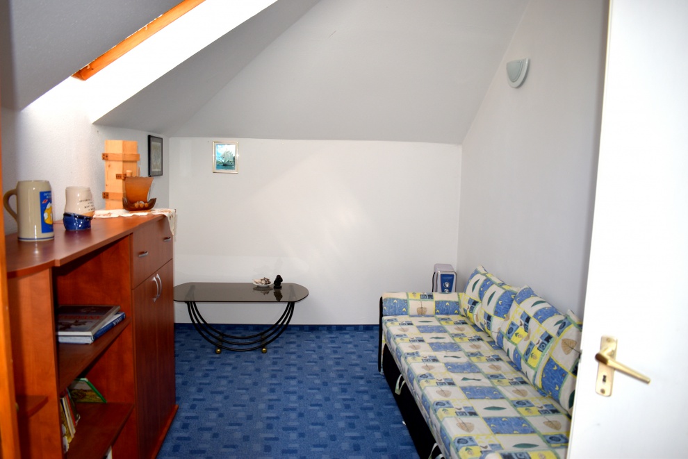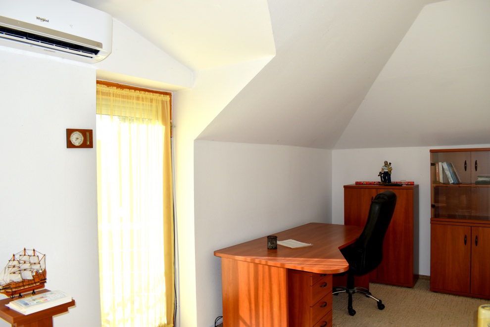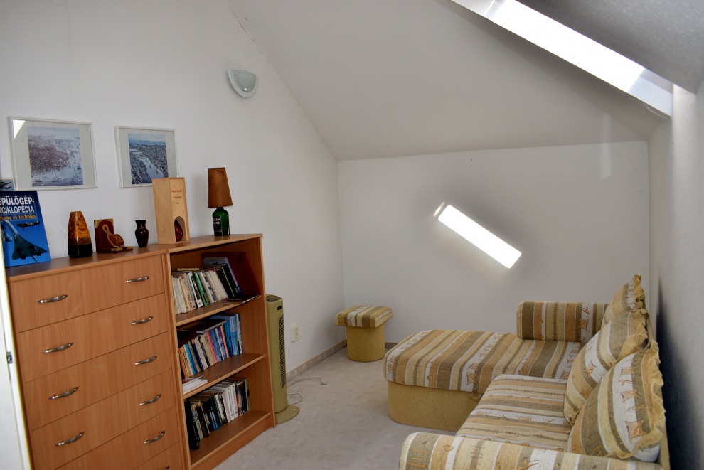 Tetőtérben: előszoba, 4 hálószoba, zuhanyzós fürdőszoba, wc, 2 kisméretű teraszok