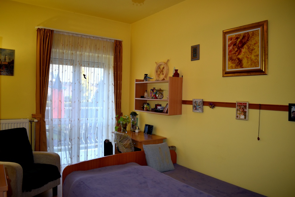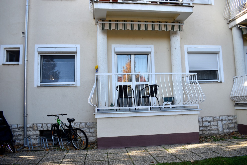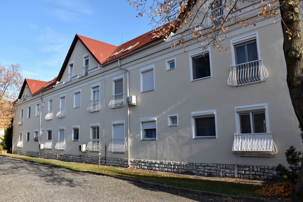 Az ingatlan Balatonfüred központi, de kevésbé frekventált városrészén helyezkedik el, 10 perces sétára a Balatontól. A 16 lakásos társasház 3 szintes és részben alápincézett. Az eladó lakás a magasföldszinten található, 6 lépcső vezet a bejárathoz. A társasháznak 2 lépcsőháza van. A kert dísznövényekkel beültetett, gyalogos és autós (távirányítós)kapukkal rendelkezik. A telek épület mögötti részén parkolási lehetőség, illetve 8 garázsos épület biztosítja a gépjárművek elhelyezését. A lakás belső elosztása: 2 szoba, konyha, kádas fürdőszoba wc-vel, előszoba és egy déli fekvésű terasz. A nagyobbik szoba klímával felszerelt.A lakáshoz egy 2 m2-es tároló is tartozik.